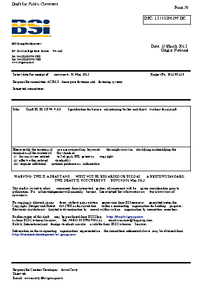 BS SP 94 AMD2. Specification for bronze oil-retaining bushes and thrust washers for aircraft