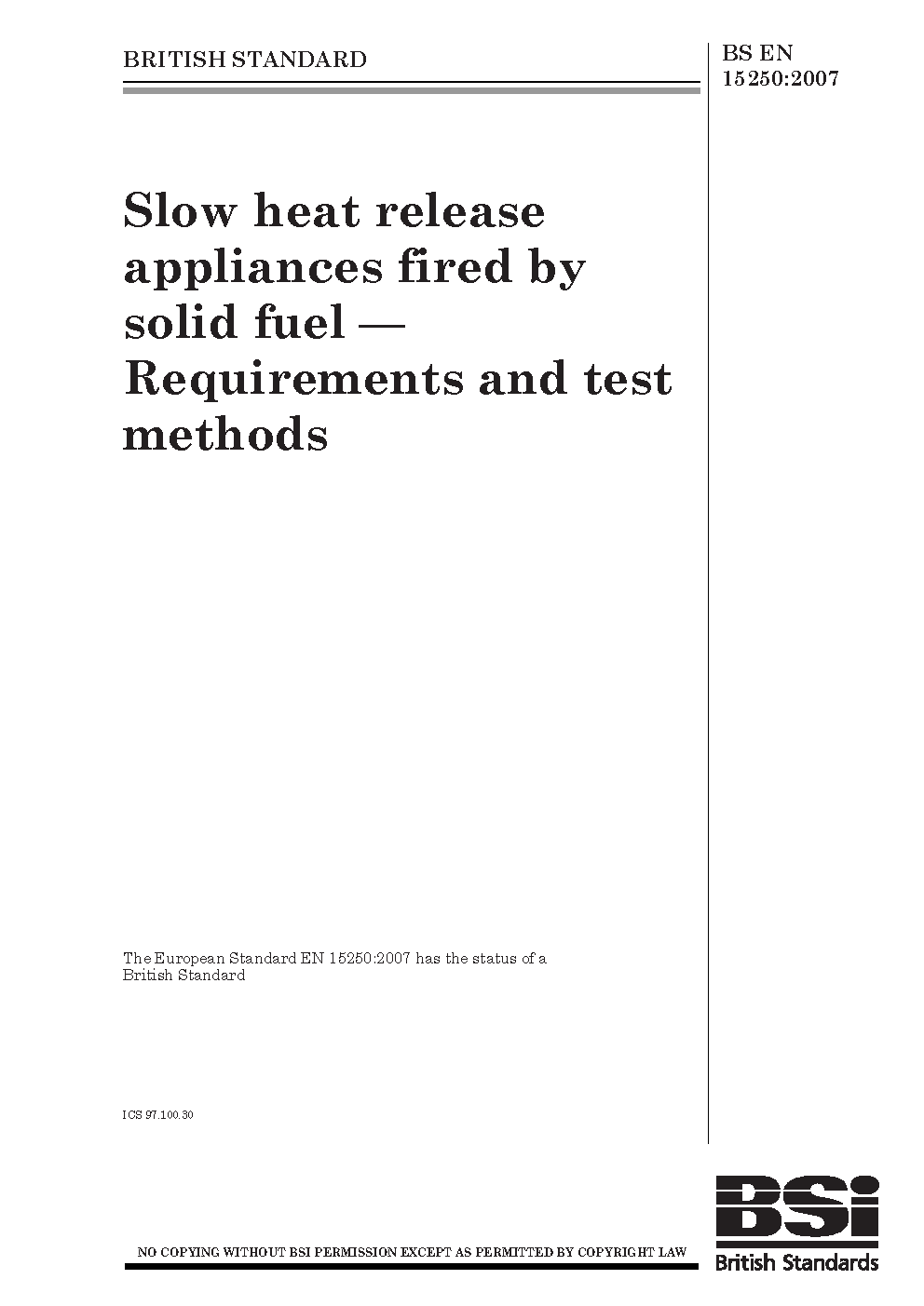BS EN 15250. Slow release appliances fired by solid fuel. Requirements and test methods