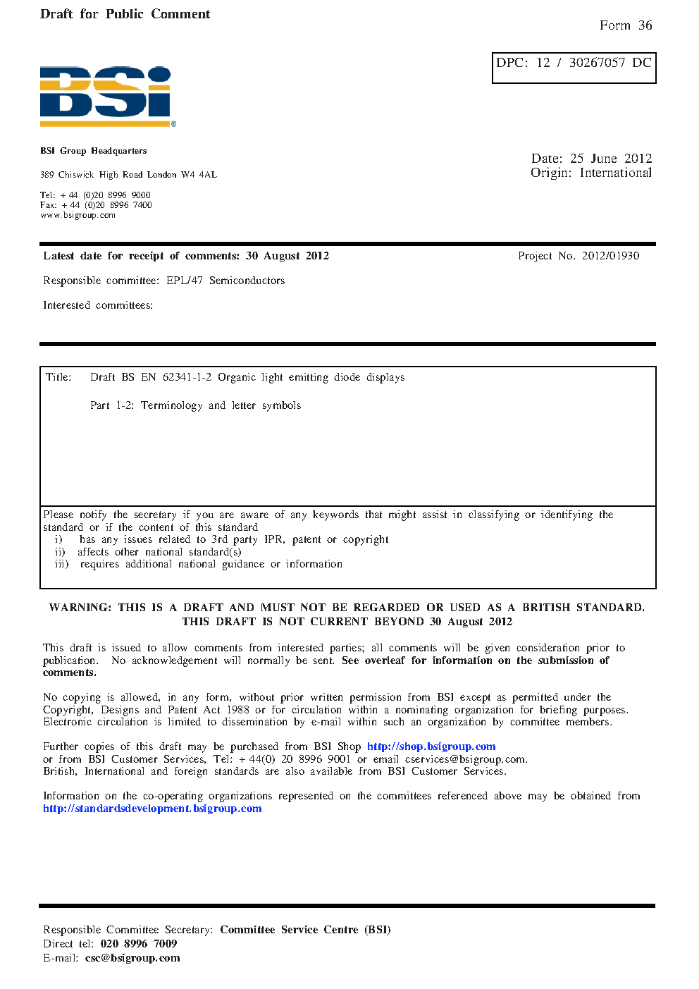 BS EN 62341-1-2. Organic light emitting diode displays. Terminology and letter symbols