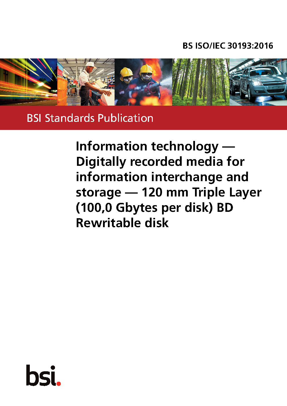 BS ISO/IEC 30193. Information technology. Digitally recorded media for information interchange and storage. 120 mm Triple Layer (100,0 Gbytes per disk) BD Rewritable disk