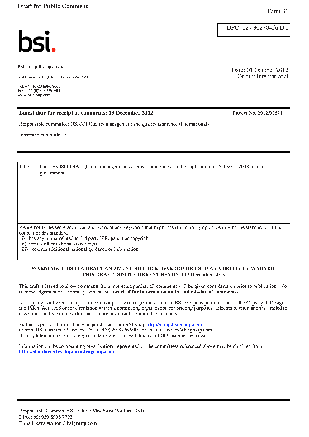 BS ISO 18091. Quality management systems. Guidelines for the application of ISO 9001:2008 in local government