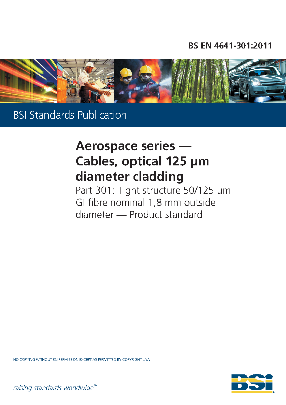 BS EN 4641-301. Aerospace series. Cables, optical 125µm diameter cladding Part 301. Tight structure 50-125 µm GI fibre nominal 1.8 mm Outside Diameter. Product Standard