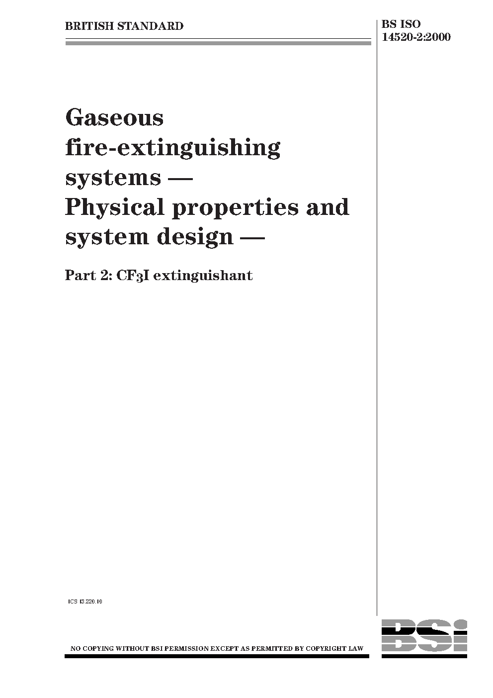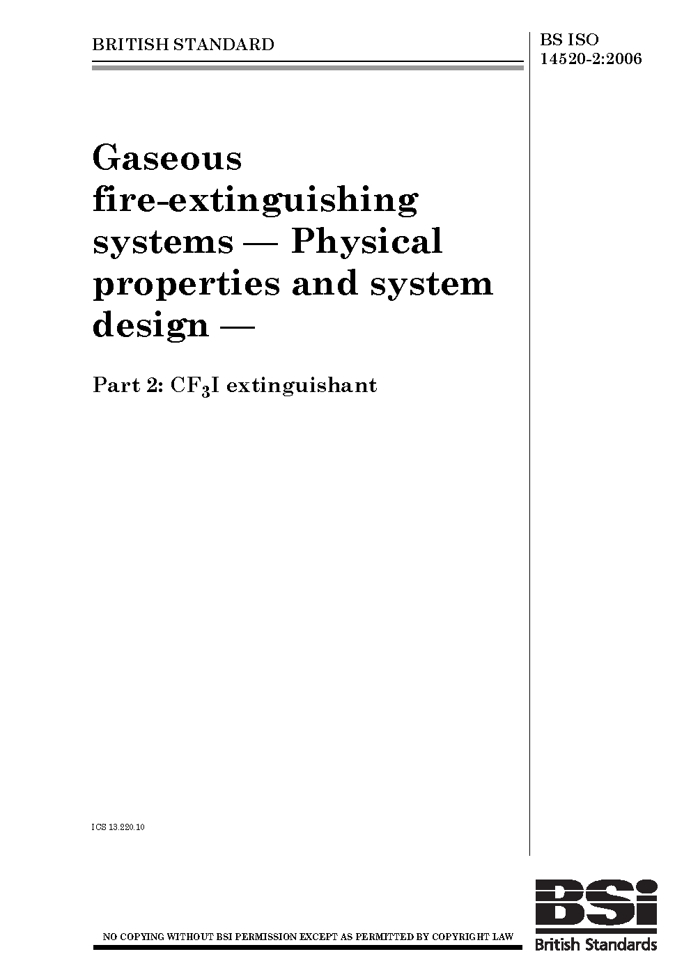 BS ISO 14520-2. Gaseous fire-extinguishing systems. Physical properties and system design. Part 2. CF3I extinguishant