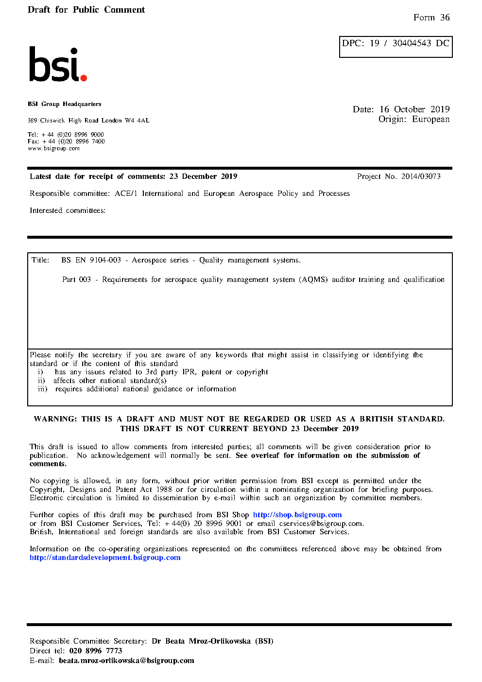 Draft standard