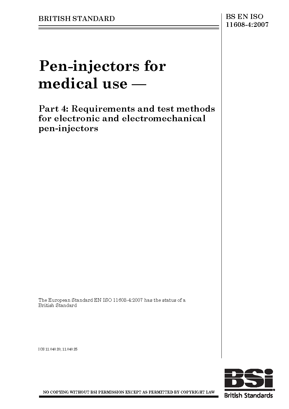 BS EN ISO 11608-4. Needle-based injection systems for medical use. Requirements and test methods. Part 4. Needle-based injection systems containing electronics