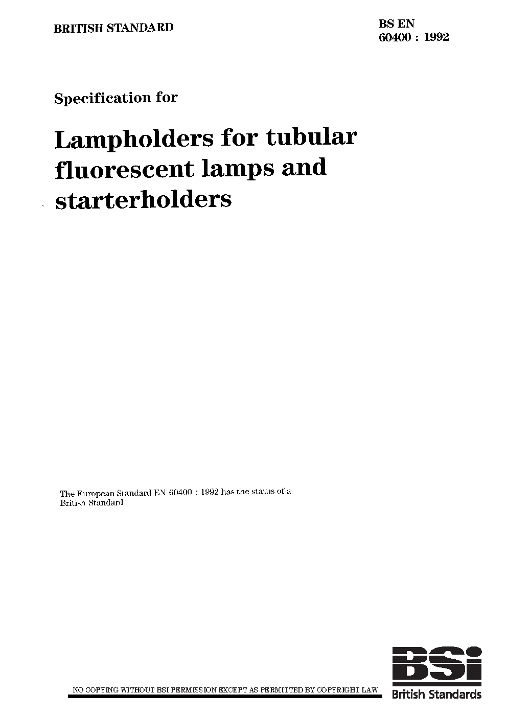 BS EN 60400 AMD3. Lampholders for tubular fluorescent lamps and starterholders