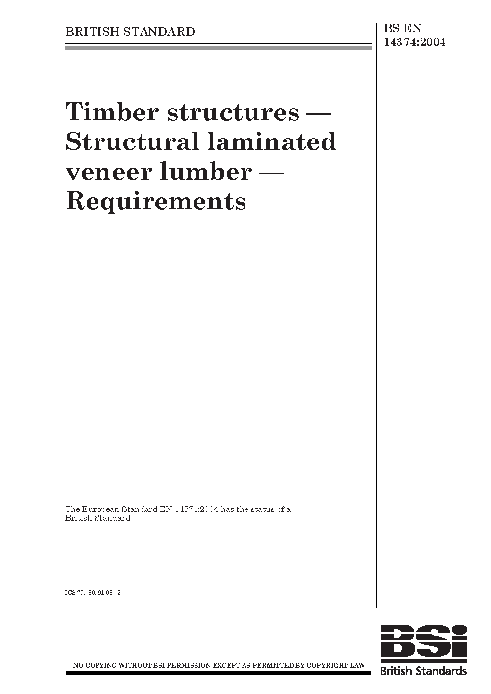 BS EN 14374. Timber structures. Laminated veneer lumber (LVL). Requirements