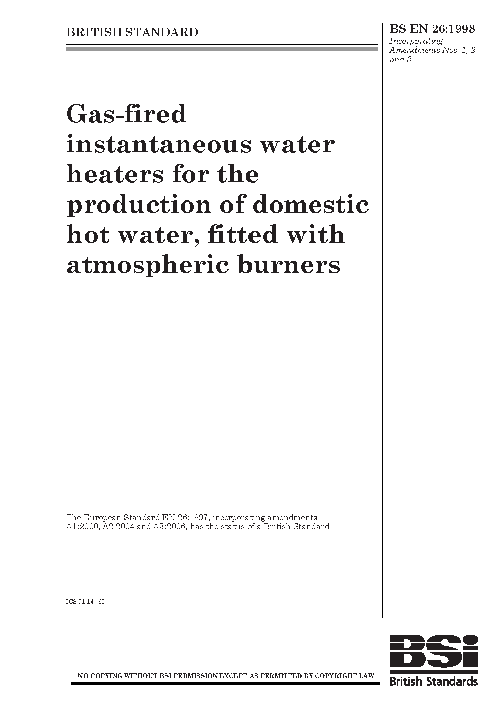 BS EN 26 AMD1. Gas-fired instantaneous water heaters for the production of domestic hot water