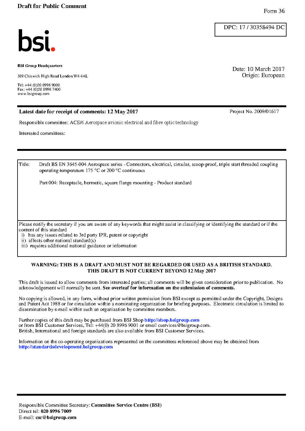 Draft standard