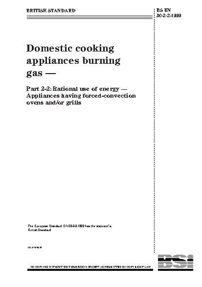 BS EN 30-2-2. Domestic cooking appliances burning gas. Part 2-2. Rational use of energy. Appliances having forced-convection ovens and/or grills