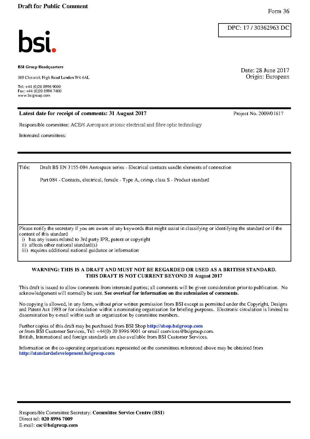 Draft standard