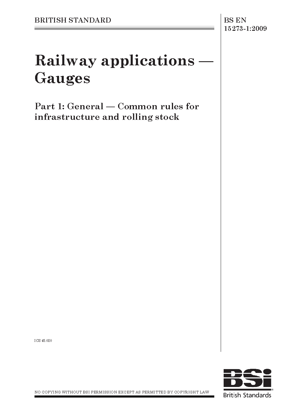 BS EN 15273-1. Railway applications. Gauges Part 1. Generic explanations and methods of gauging