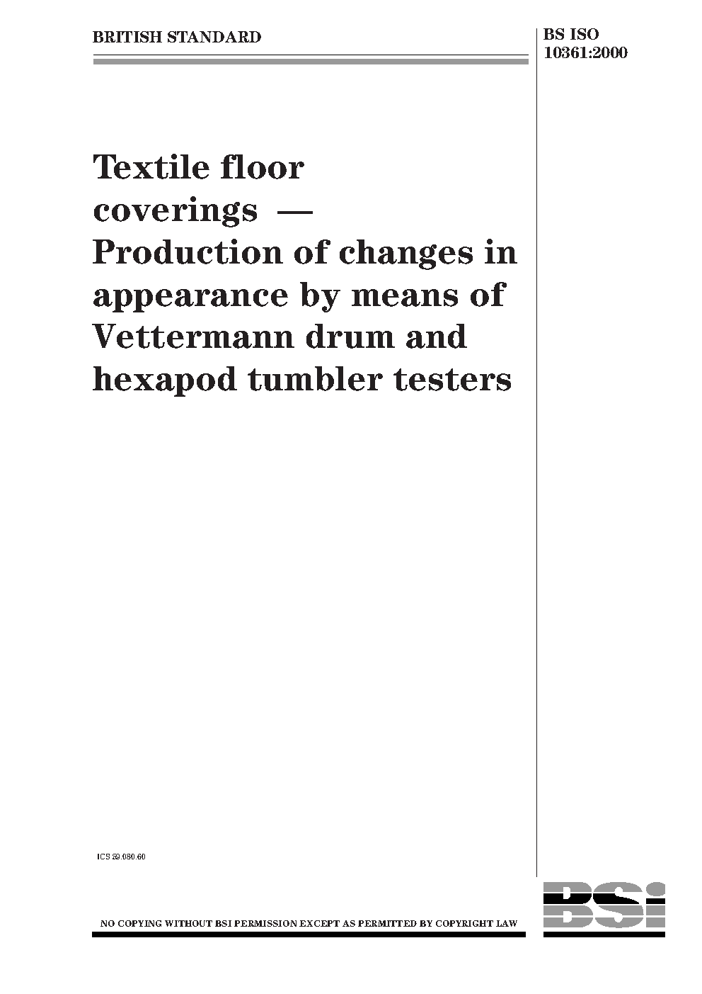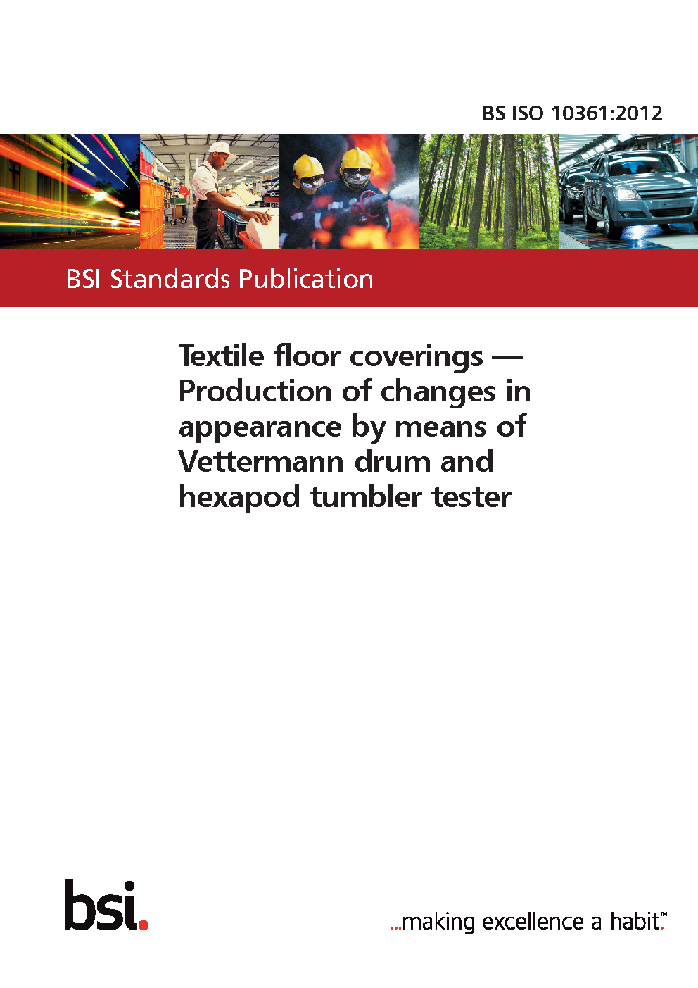 BS ISO 10361. Textile floor coverings. Production of changes in appearance by means of Vettermann drum and hexapod tumbler tester