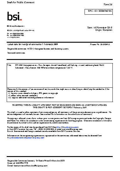 BS EN 3434. Aerospace series. Nuts, hexagon, slotted / castellated, self-locking, in steel, cadmium plated, MoS2 lubricated. Classification: 900 MPa (at ambient temperature) / 235°C