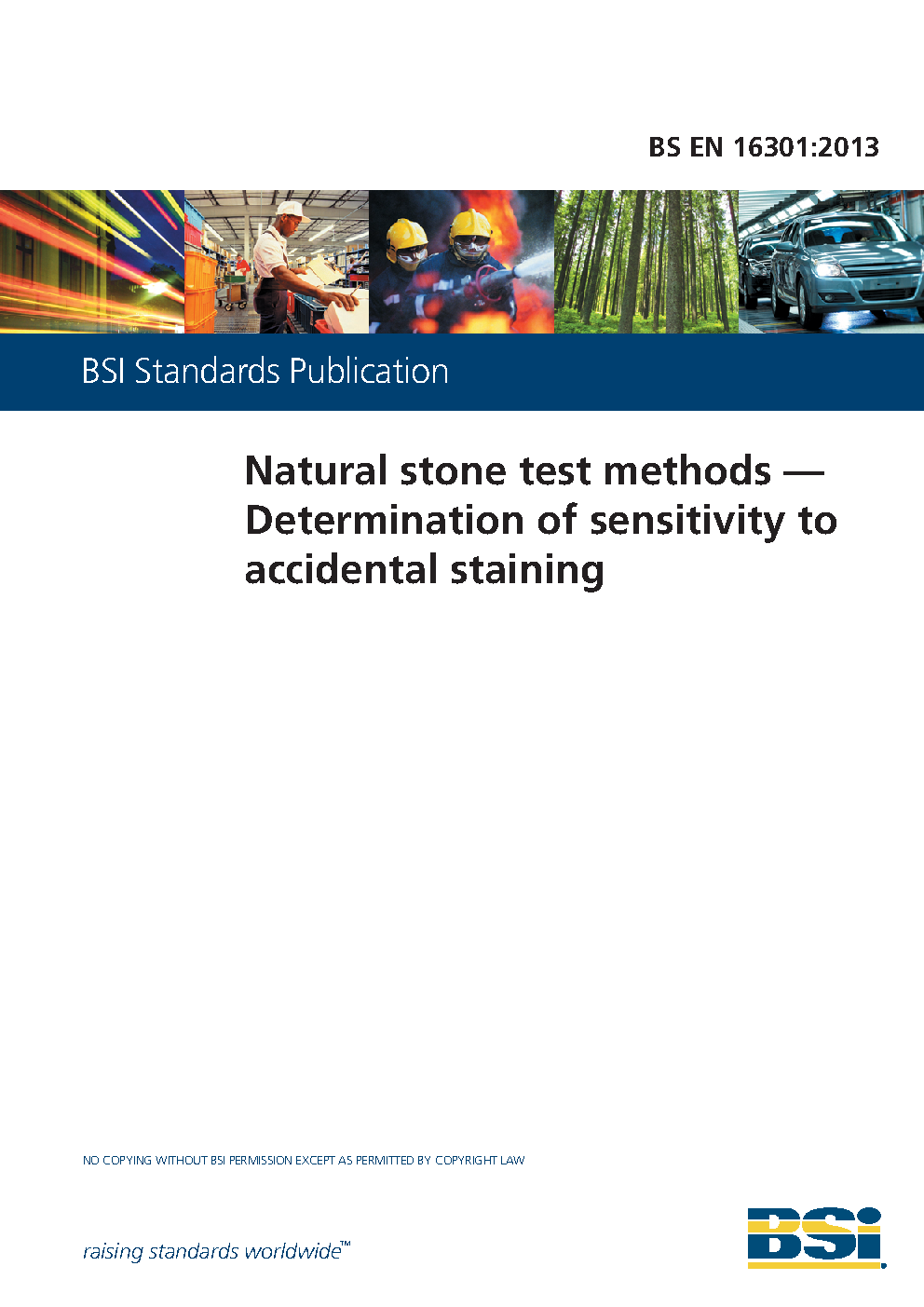 BS EN 16301. Natural stone test methods. Determination of sensitivity to accidental staining