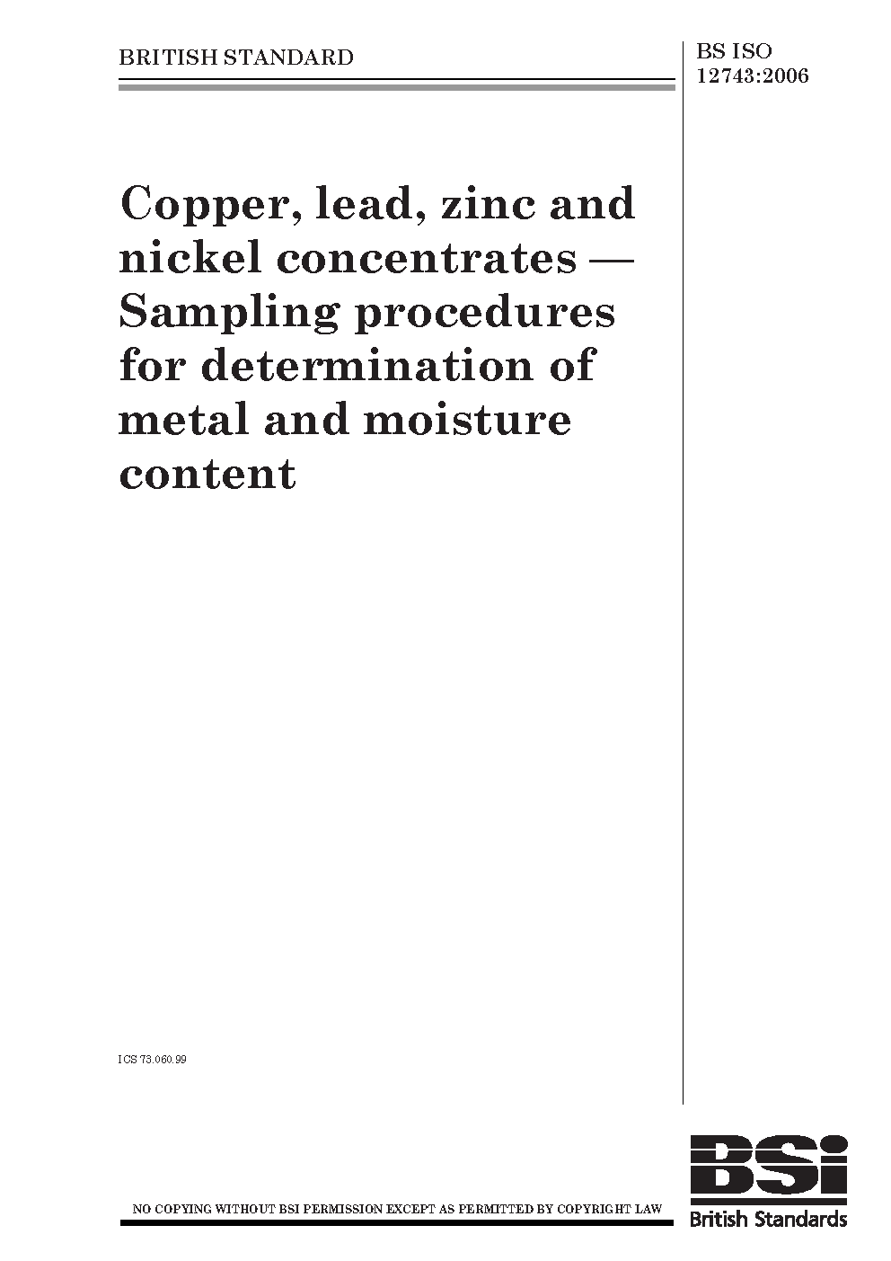 BS ISO 12743 AMD1. Copper, lead, zinc and nickel concentrates. Sampling procedures for determination of metal and moisture content