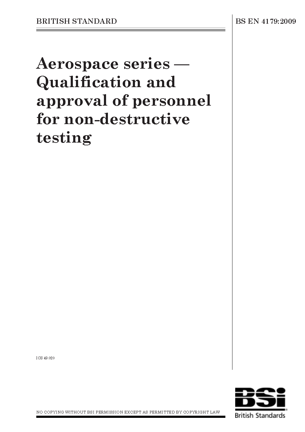 BS EN 4179. Aerospace series. Qualification and approval of personnel for non- destructive testing