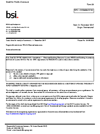 BS EN IEC 63044-5-3 AMD1. Home and Building Electronic Systems (HBES) Automation Control (BACS) Part 5-3. EMC requirements for HBES/BACS used in industrial environments