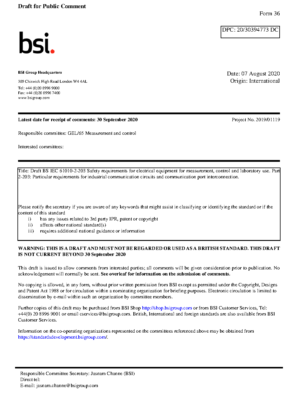 Draft standard