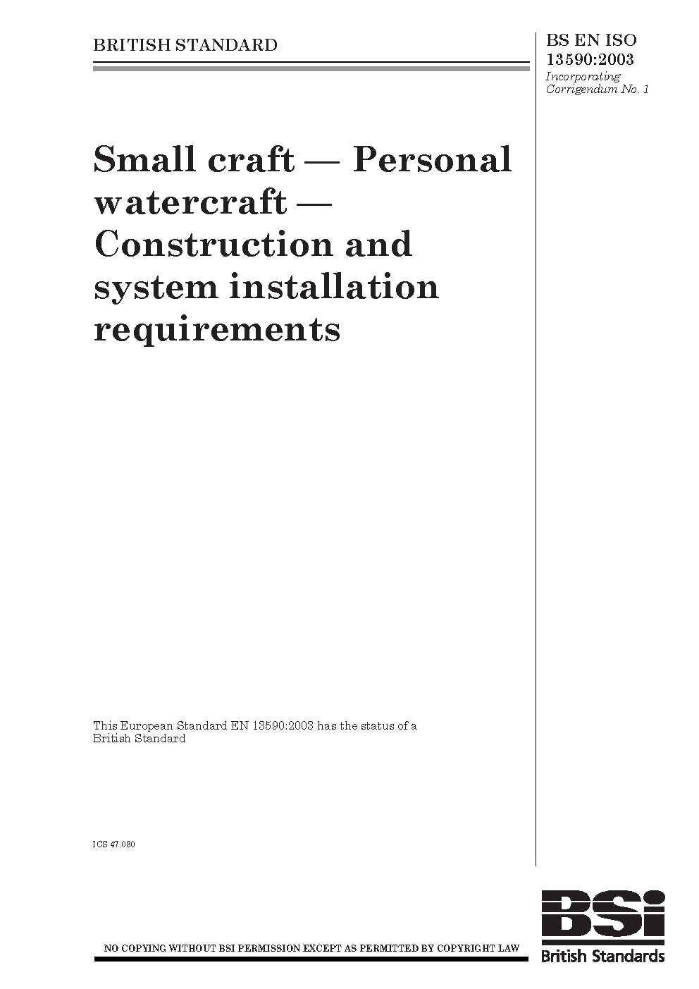 BS EN ISO 13590. Small craft. Personal watercraft. Construction and system installation requirements