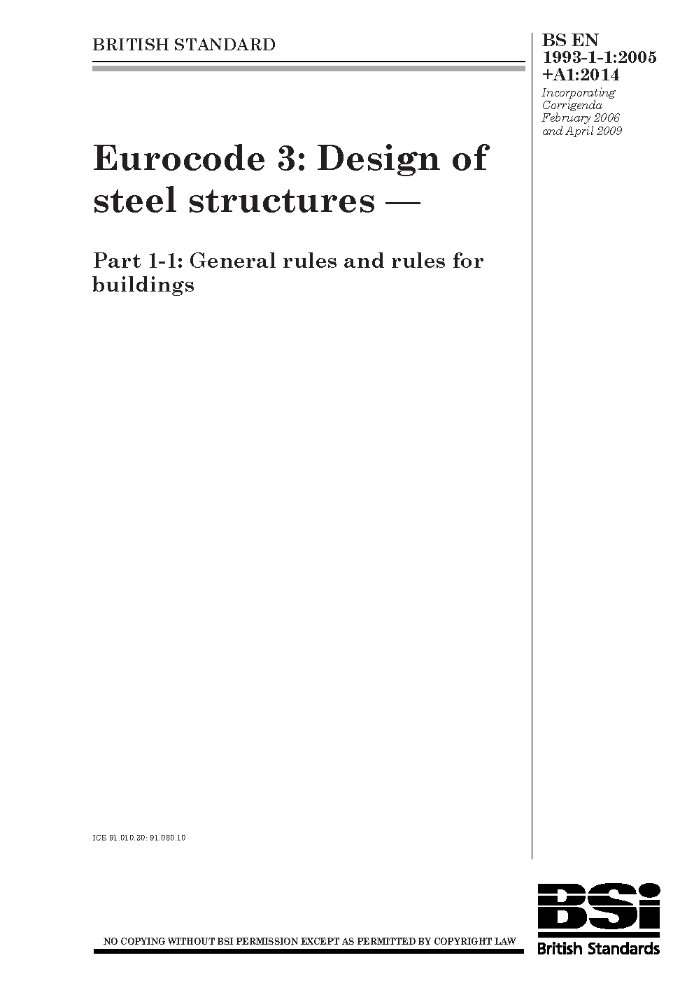 BS EN 1993-1-1. Eurocode 3. Design of steel structures Part 1-1. General rules and for buildings