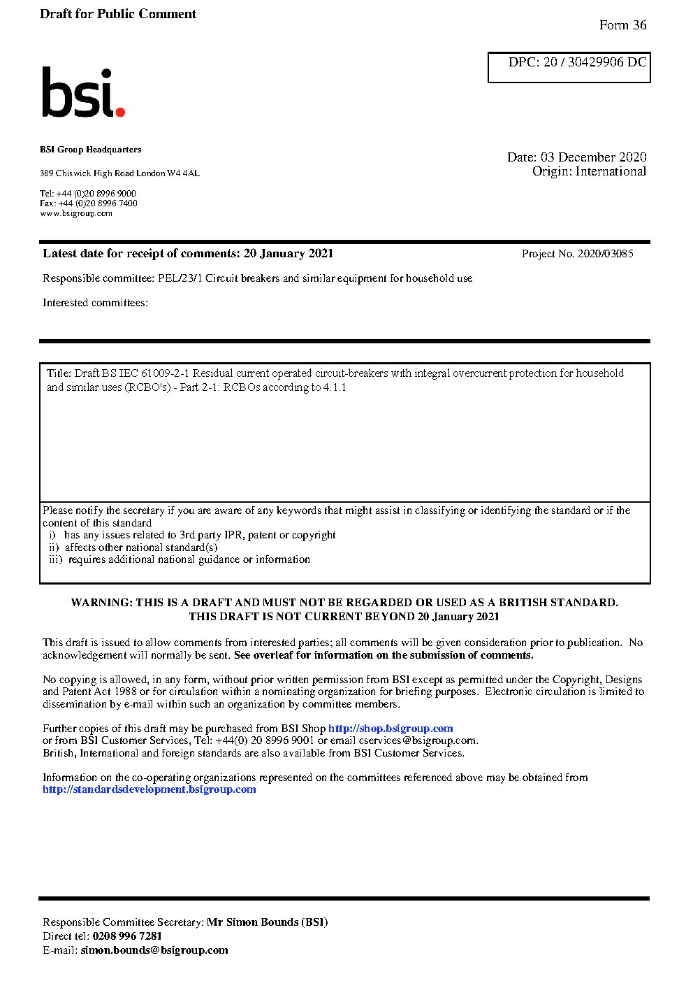 Draft standard