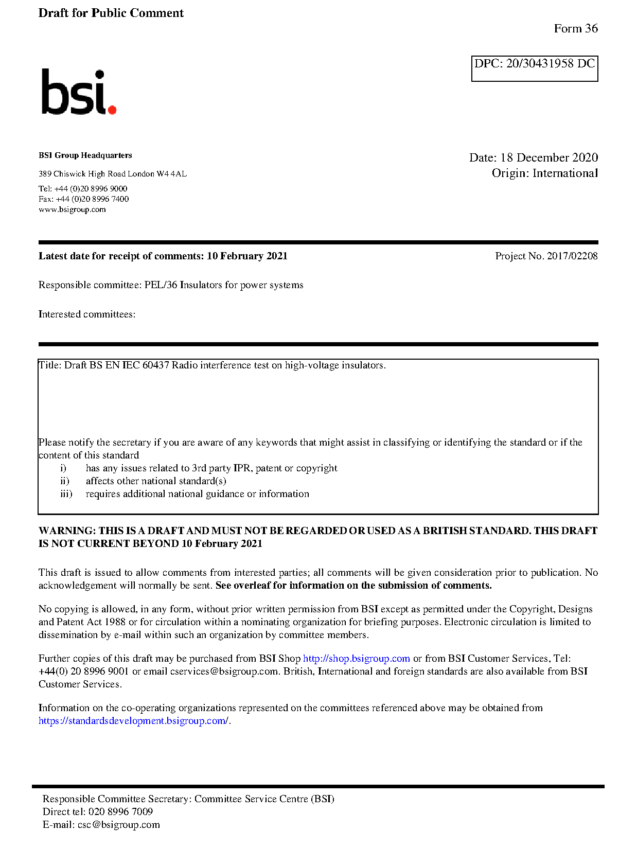 Draft standard