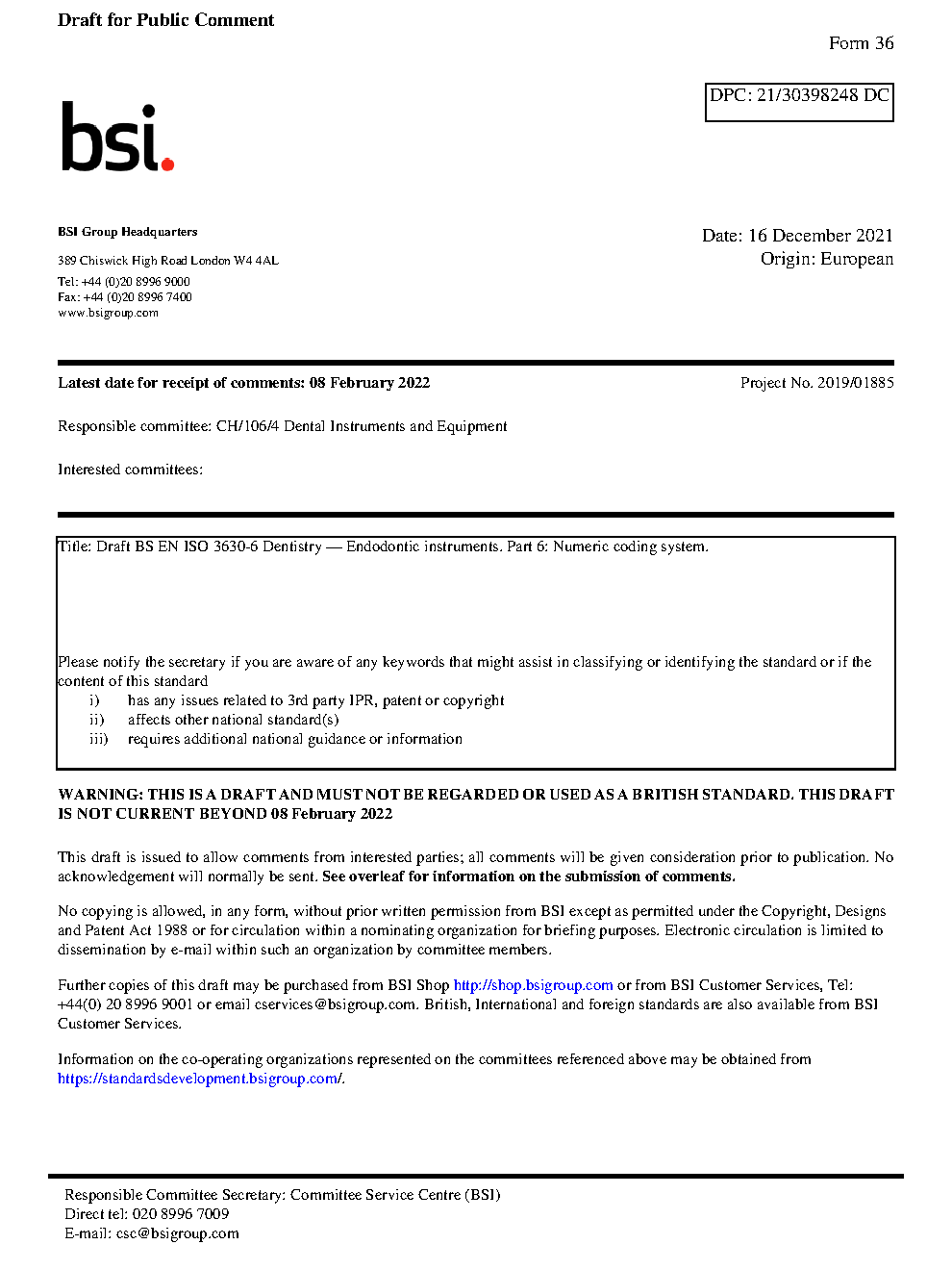 BS EN ISO 3630-6. Dentistry. Endodontic instruments Part 6. Numeric coding system