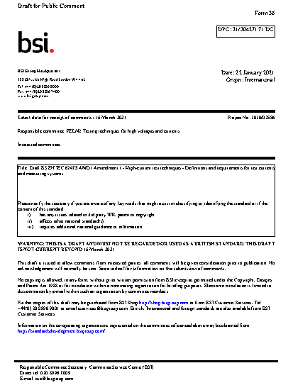 BS EN IEC 62475 AMD1. High-current test techniques. Definitions and requirements for test currents and measuring systems