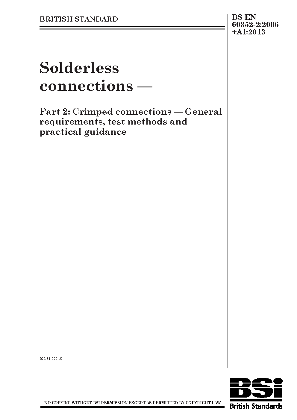 BS EN 60352-2. Solderless connections Part 2. Crimped connections. General requirements, test methods and practical guidance