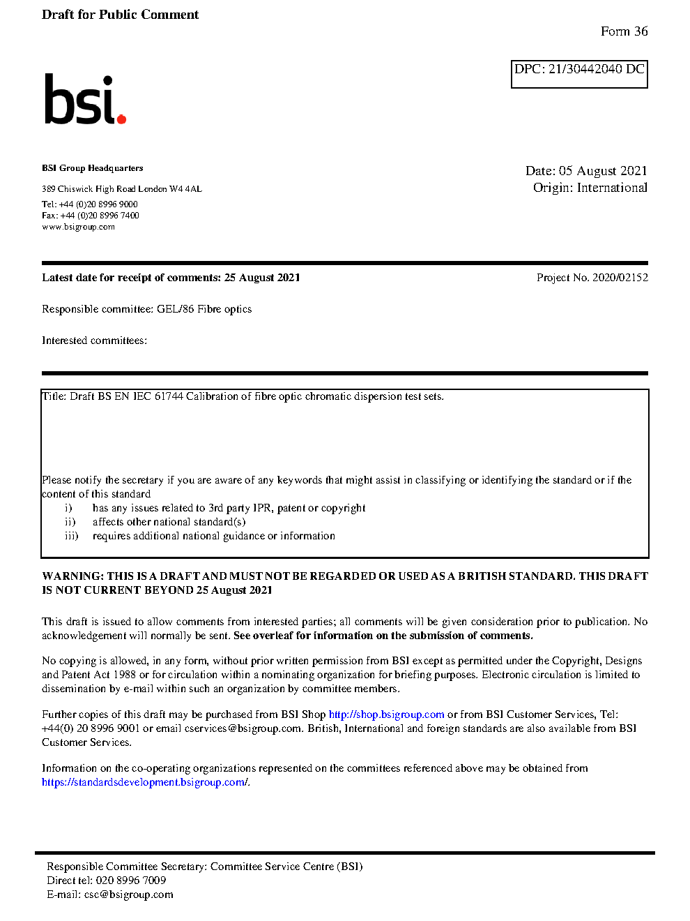 Draft standard