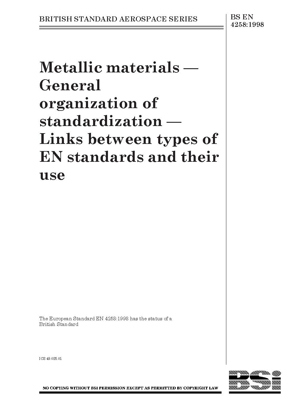 BS EN 4258. Aerospace series. Metallic materials. General organization of standardization. Link between types of European Standards and their use