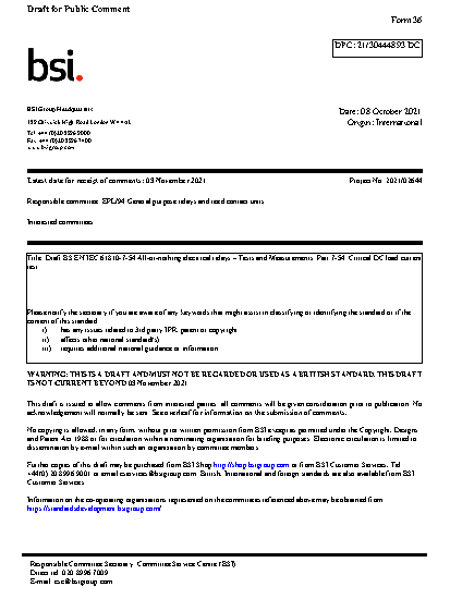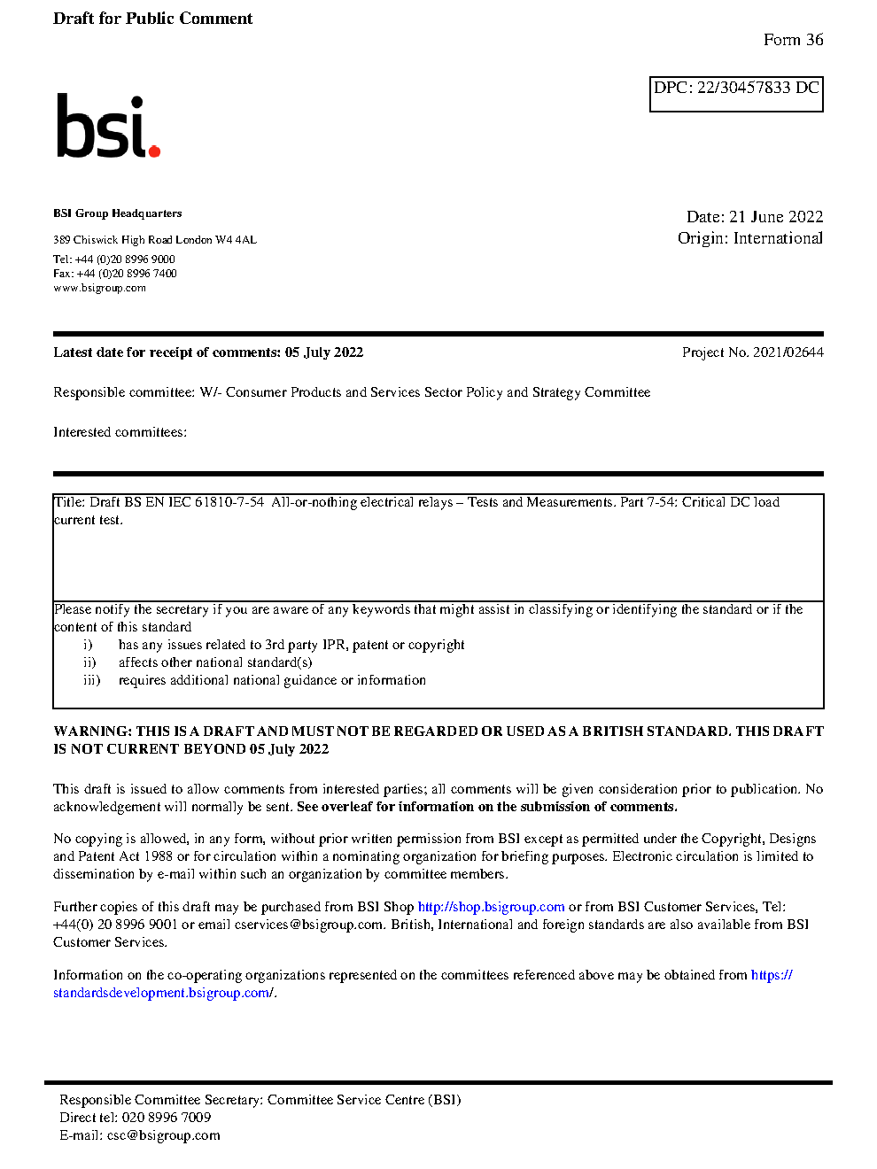 BS EN IEC 61810-7-54. All-or-nothing electrical relays. Tests and Measurements Part 7-54. Critical DC load current test