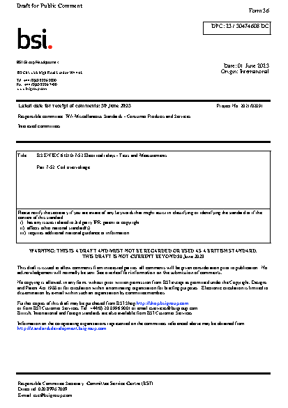 BS EN IEC 61810-7-52. All-or-nothing electrical relays. Tests and Measurements Part 7-52. Coil overvoltage