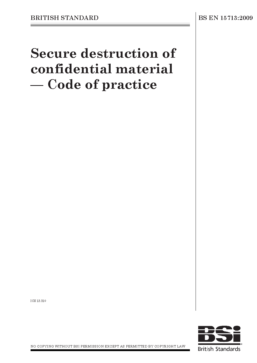 BS EN 15713. Secure destruction of confidential material. Code of practice
