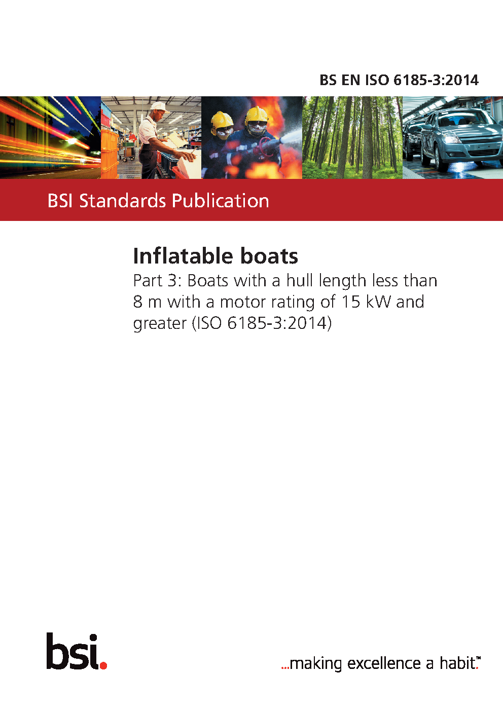 BS EN ISO 6185-3. Inflatable boats Part 3. Boats with a hull length less than 8 m motor rating of 15 kW and greater