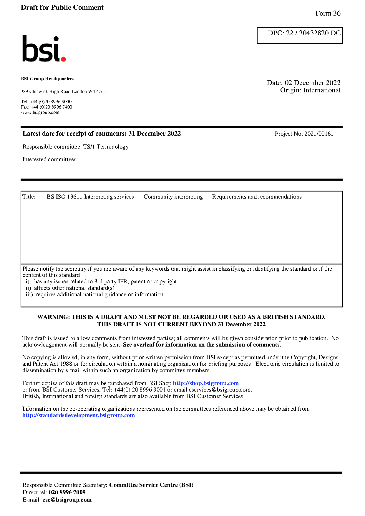 BS ISO 13611. Interpreting services. Community interpreting. Requirements and recommendations