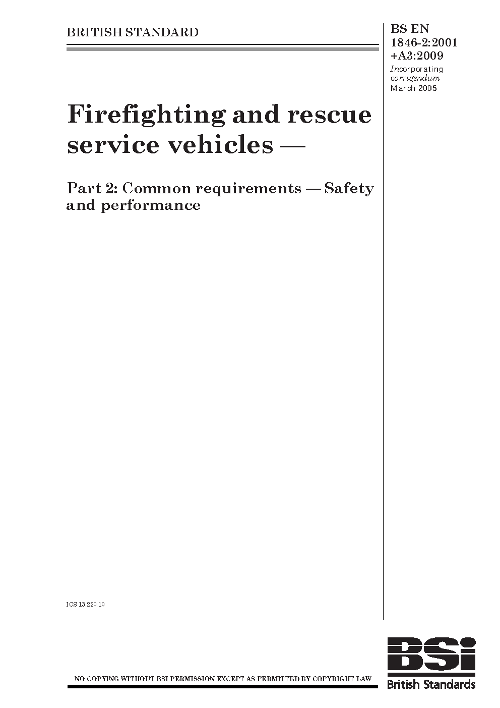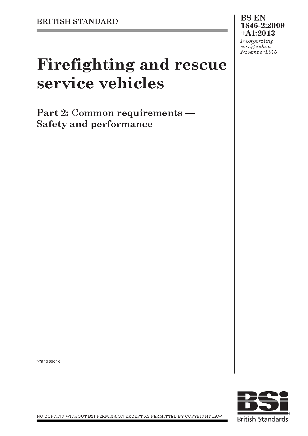 BS EN 1846-2. Firefighting and rescue service vehicles Part 2. Common requirements. Safety performance