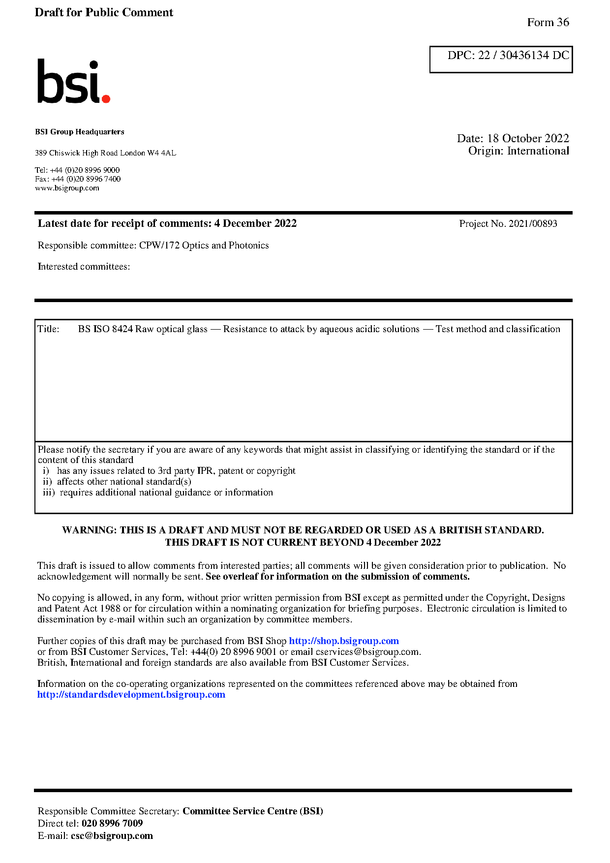 Draft standard