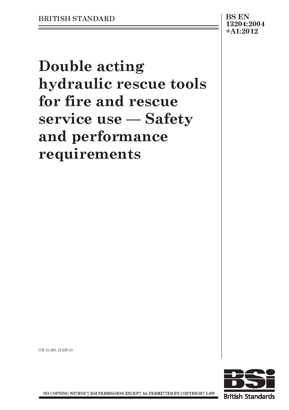 BS EN 13204. Powered rescue tools for fire and rescue service use. Safety and performance requirements