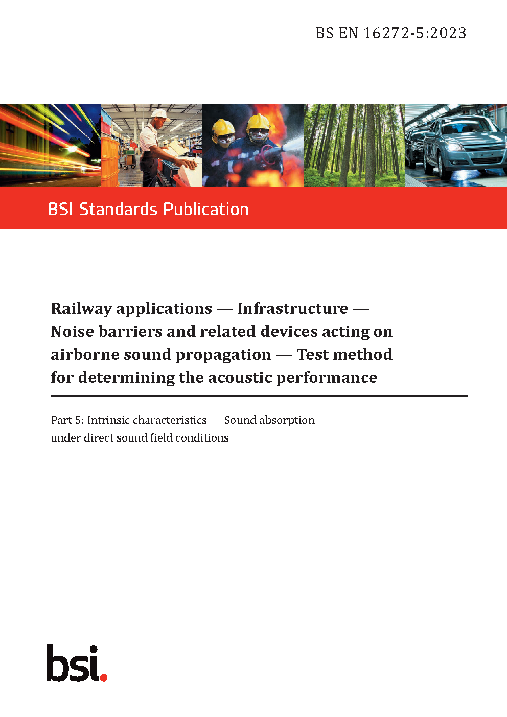 BS EN 16272-5. Railway applications. Infrastructure. Noise barriers and related devices acting on airborne sound propagation. Test method for determining the acoustic performance Part 5. Intrinsic characteristics. Sound absorption under direct field conditions