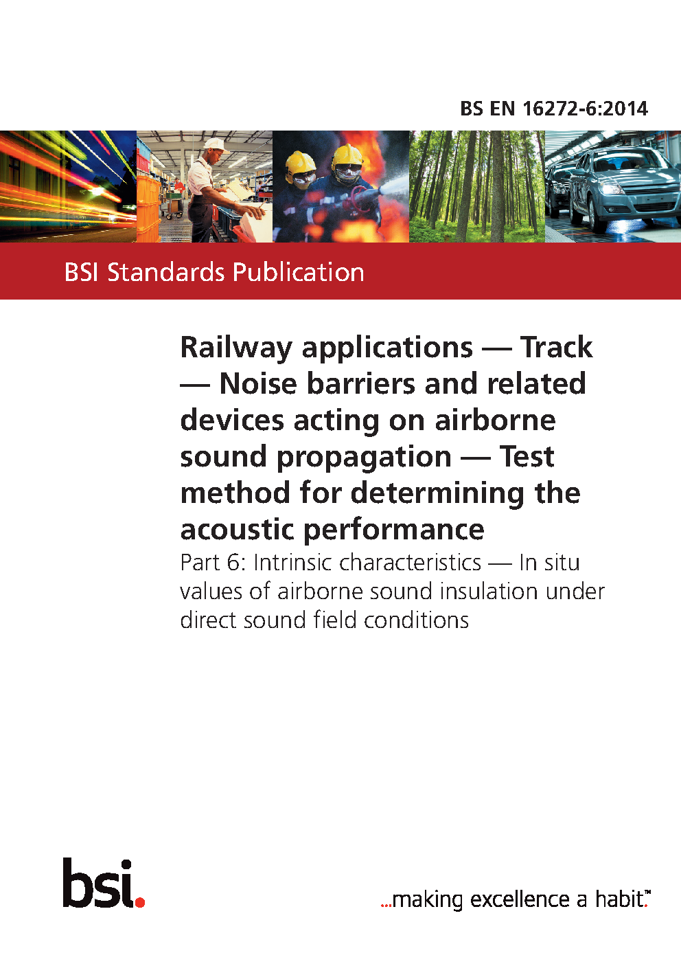 BS EN 16272-6. Railway applications. Infrastructure. Noise barriers and related devices acting on airborne sound propagation. Test method for determining the acoustic performance Part 6. Intrinsic characteristics. In situ values of insulation under direct field conditions