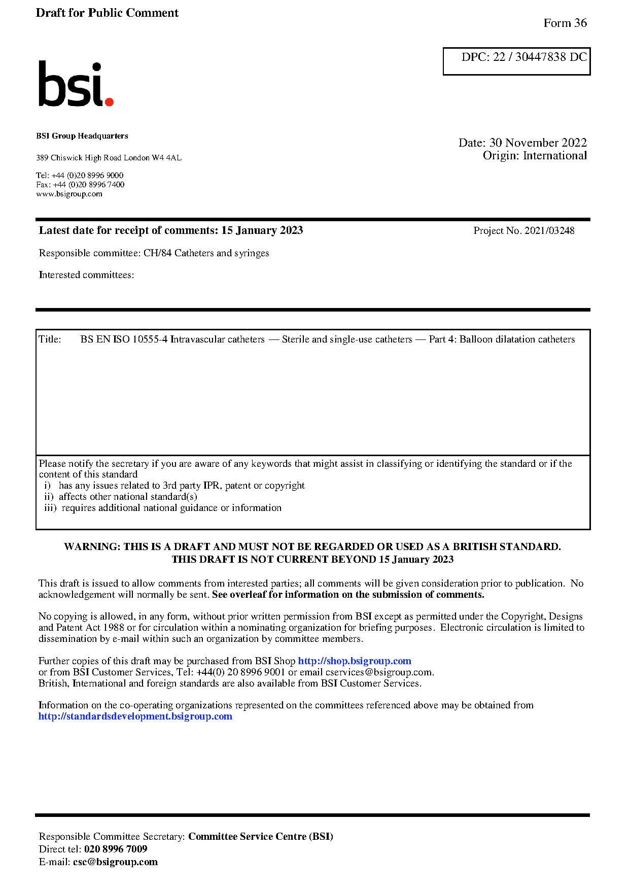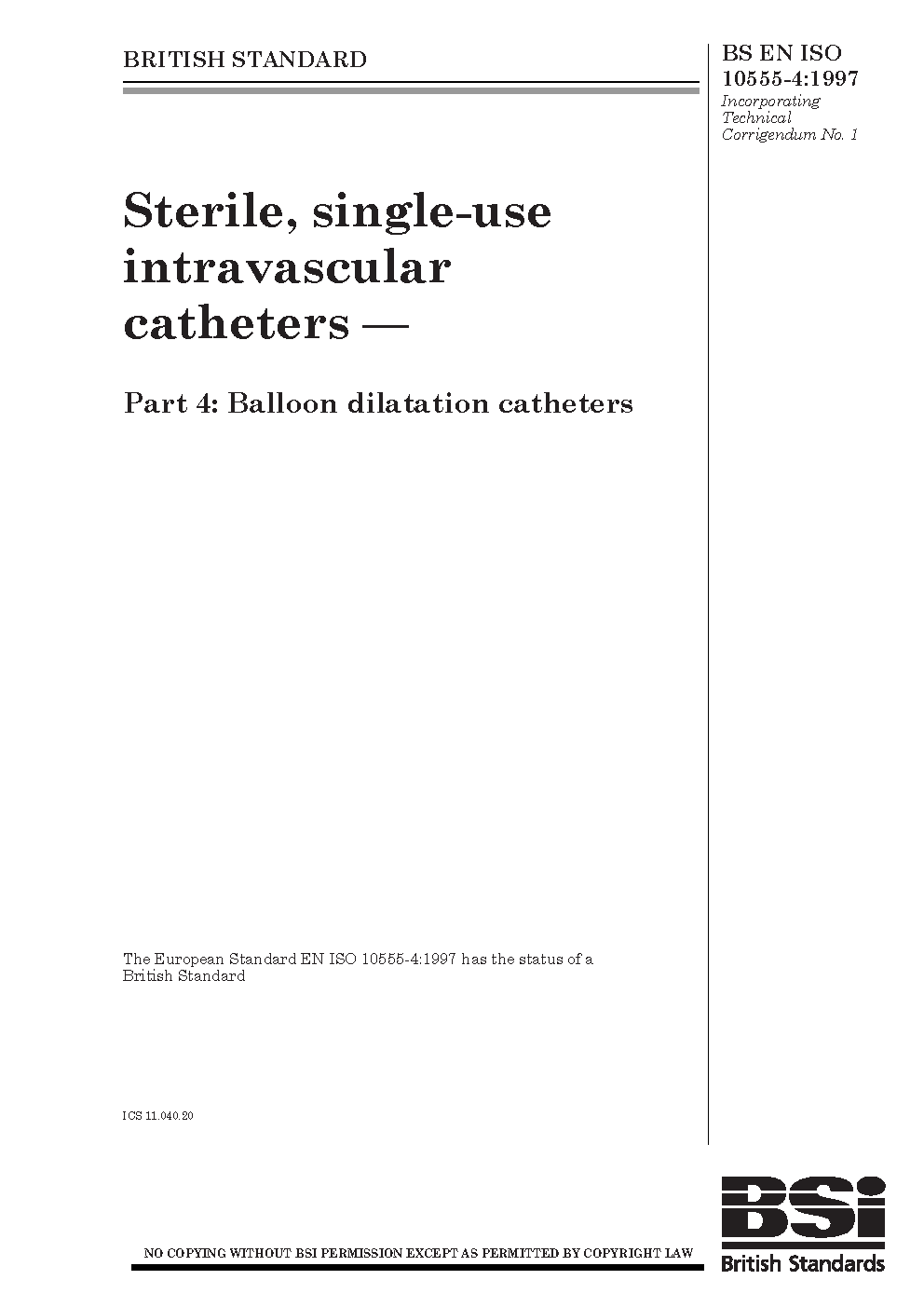 BS EN ISO 10555-4. Intravascular catheters. Sterile and single-use catheters Part 4. Balloon dilatation
