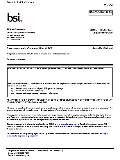 BS EN IEC 61810-7-24. All-or-nothing electrical relays. Tests and Measurements Part 7-24. Load transfer