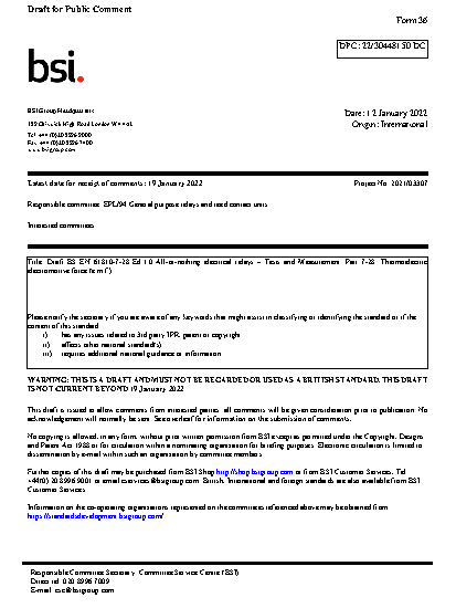 BS EN 61810-7-28. All-or-nothing electrical relays. Tests and Measurement Part 7-28. Thermoelectric electromotive force (e.m.f.)
