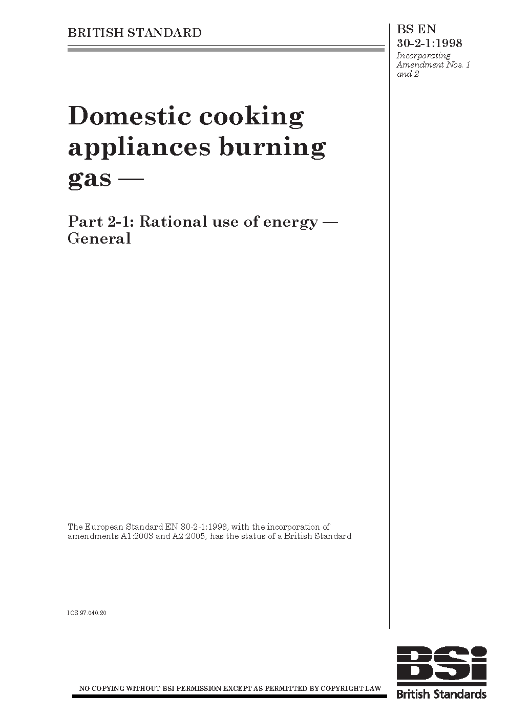 BS EN 30-2-1. Domestic cooking appliances burning gas Part 2-1. Rational use of energy. General