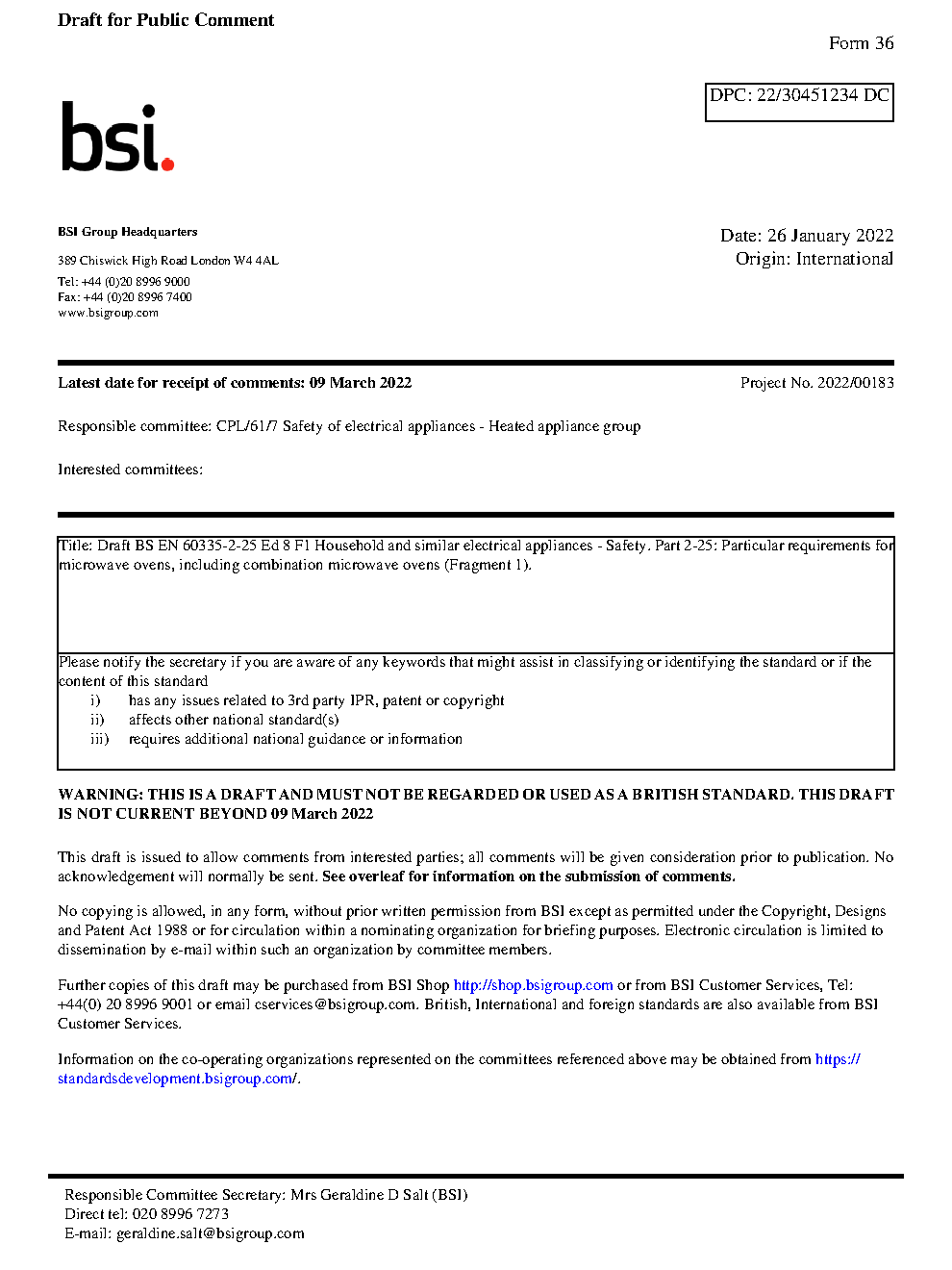 Draft standard