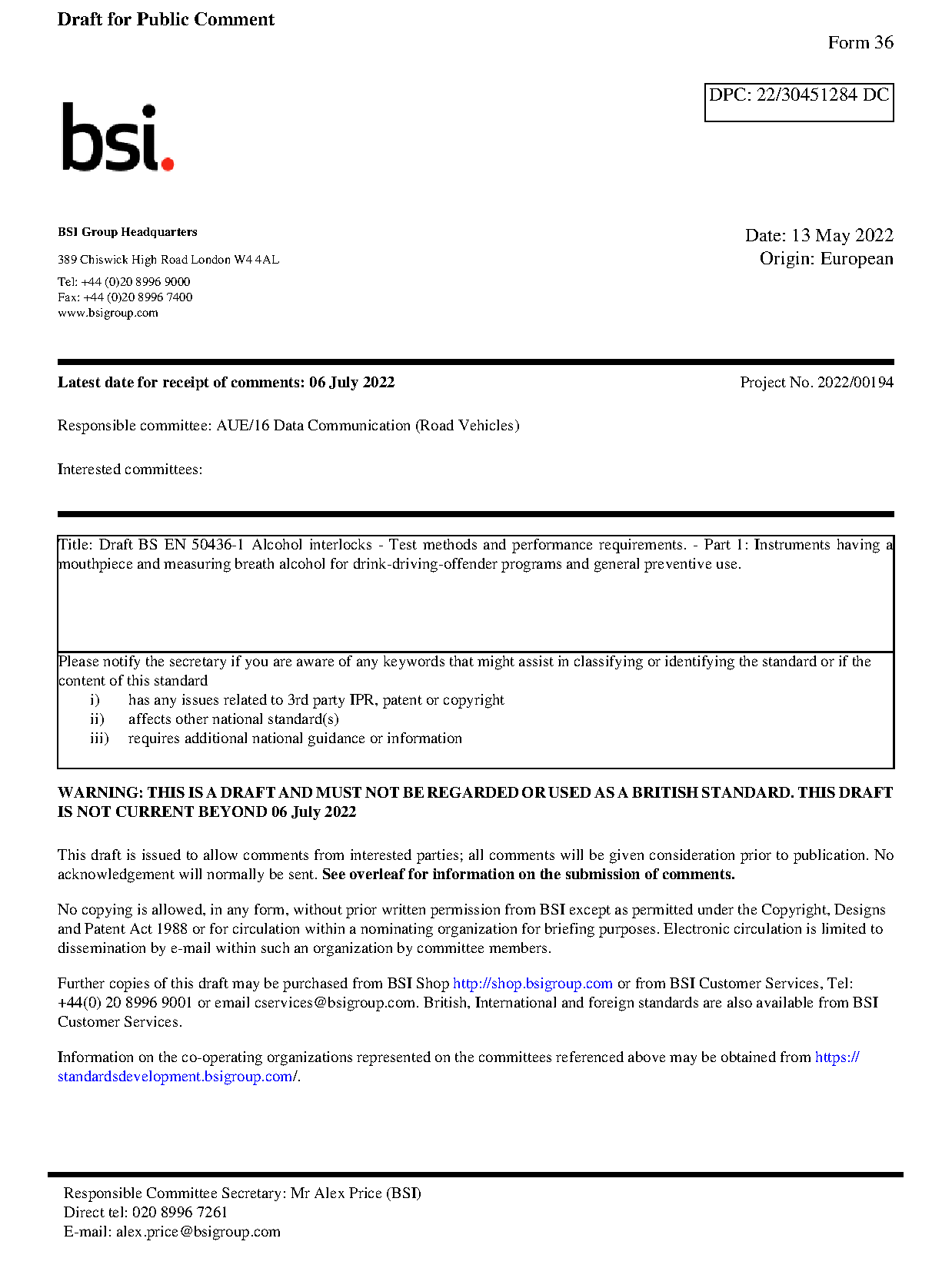 Draft standard
