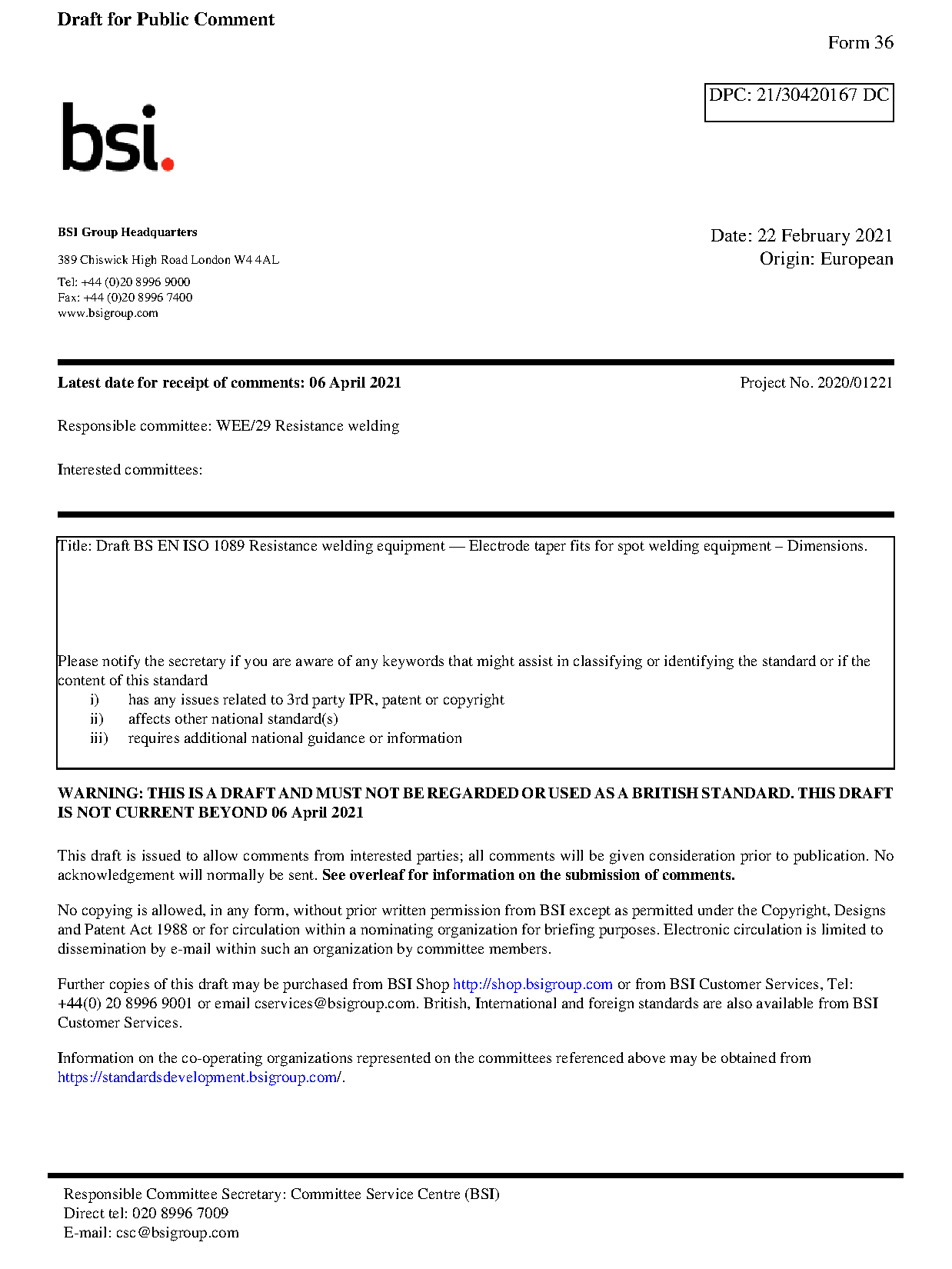 Draft standard