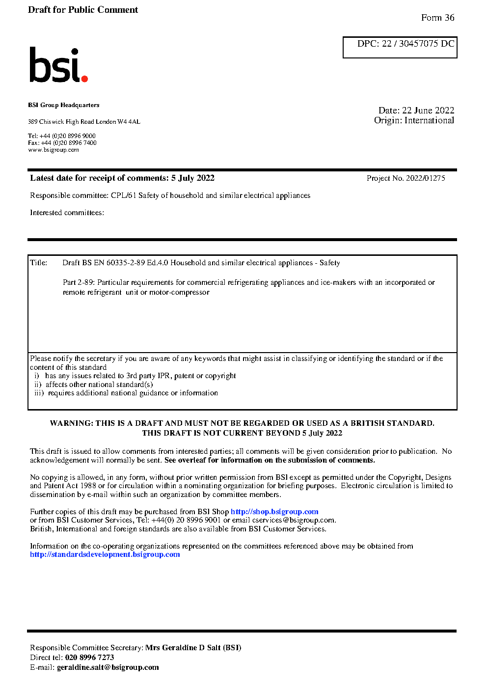Draft standard